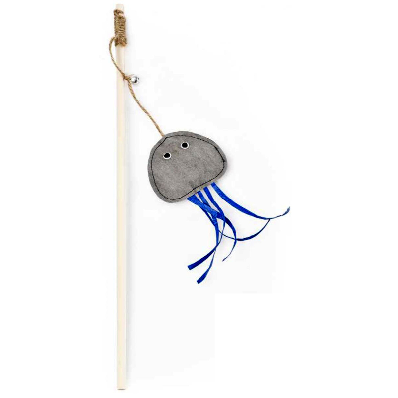 Wędka dla kota w kształcie meduzy z dzwoneczkiem to wspaniała zabawka, która zapewni Twojemu kotu interaktywną i ekscytującą rozrywkę. Zabawka składa się z meduzy o wymiarach 25x6cm oraz kijka o długości 40cm, co czyni ją idealną do interaktywnej zabawy z kotem. Meduza jest wykonana z atrakcyjnych materiałów i ma kształt, który przyciąga uwagę Twojego kota. Dodatkowo, jest wyposażona w dzwoneczek, który dodaje dźwiękowy element podczas zabawy, co jeszcze bardziej stymuluje kota. Kijek o długości 40cm zapewnia Ci wygodne trzymanie wędki, a także umożliwia prowadzenie meduzy w różnych kierunkach, imitując naturalne ruchy zdobyczy. Wędka dla kota z meduzą pozwala na interaktywną zabawę, angażując kota w łapanie, skakanie i szarpanie. Dzięki temu, Twój kot nie będzie się nudził, a jednocześnie będzie zachęcany do ruchu i aktywności fizycznej. Pamiętaj, aby zawsze nadzorować zabawę Twojego kota i nie pozostawiać go samemu z wędką, aby uniknąć ryzyka zaplątania się w sznurki.Najniższa cena produktu z ostatnich 30 dni: