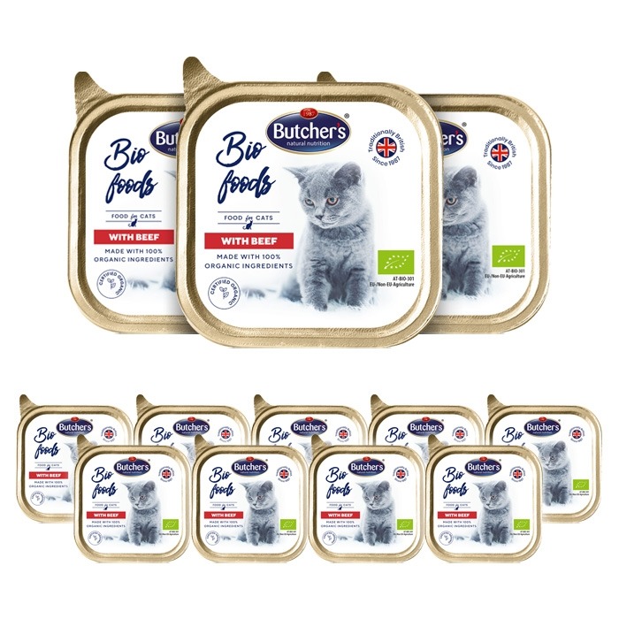 Mokra karma dla kotów Butchers. Pełna mięsa, bez produktów zbożowych, z dodatkami witaminowymi. Smaczny i wysoko strawny posiłek dla Twojego kota. Dodatkowo zawiera tylko organiczne produkty To znaczy, że surowce zostały pozyskane z naturalnego środowiska, hodowli wolnych od antybiotyków i herbicydów.