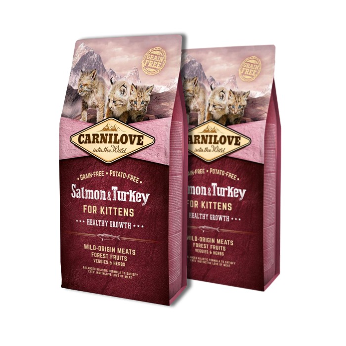 Carnilove Cat Salmon & Turkey Kittens to pełnoporcjowa, sucha karma dla kociąt oraz młodych kotów (do 1 roku życia). Specjalnie opracowana, aby zaspokoić zapotrzebowanie na energię i składniki odżywcze u dorastających kotów.