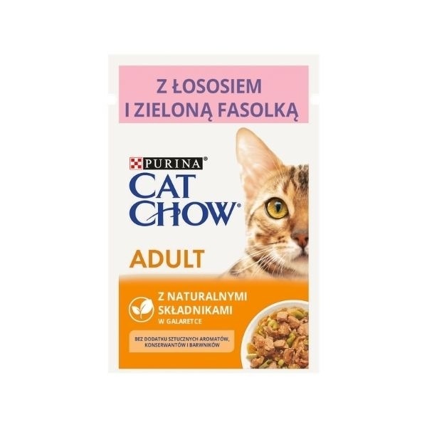 - Cat Chow Adult łosoś z zieloną fasolą 85g x 10 (multipak)
