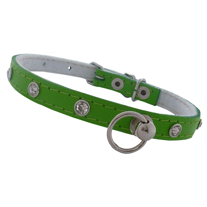 Chaba Obroża skórzana z cyrkonią zielona 10mm/30cm – obroża dla ras miniaturowych
