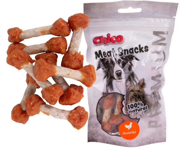 Chico Hantelki z kurczakiem to naturalny i pełen mięsa, bezzbożowy przysmak dla Twojego psa. Taka kość to nie lada gratka dla każdego psa.