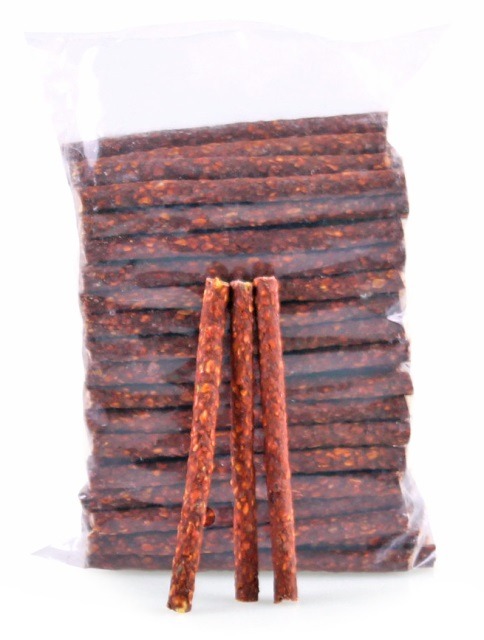 Sposób podawania : karma uzupełniająca dla psów w postaci kabanosa , znakomita jako nagroda dla psa , można podawać zwierzęciu jako dodatek do pokarmu pełnowartościowego dopasowując częstotliwość podawania do wieku i wagi zwierzęcia. Nie podawać psom z alergią !