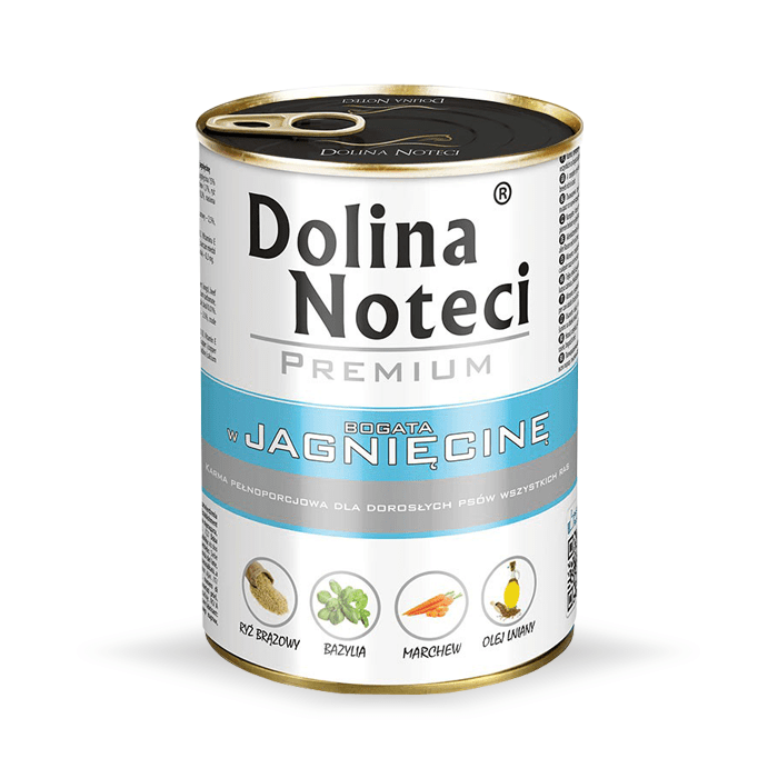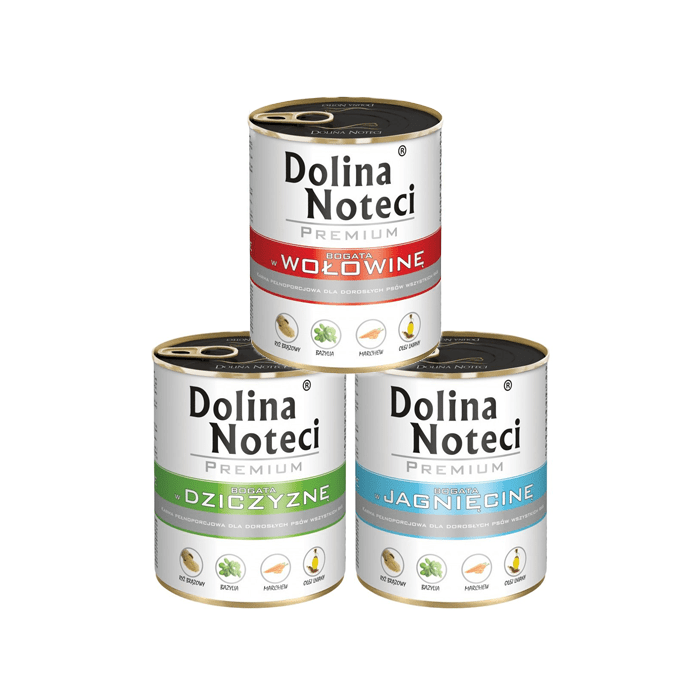 Karma mokra dla psów średnich ras zapewnia pełnowartościowy posiłek z bogactwem mięsa, które stanowią źródło aminokwasów egzogennych, takich jak: lizyna i leucyna. Mokra karma dla psa Dolina Noteci Premium składa się wyłącznie z przechodzących wieloetapowy proces selekcji, starannie dobranych składników. Karma mokra dla psów dużych ras zawiera cenne kwasy tłuszczowe, w proporcjach zapewniających prawidłowy przebieg procesów metabolicznych. Dodatek siemienia lnianego, które jest doskonałym źródłem kwasów tłuszczowych n-3 i n-6, witaminy E oraz szeregu związków biologicznie czynnych o właściwościach przeciwzapalnych, gwarantuje zdrowy i piękny wygląd sierści.Najważniejszą cechą karm Dolina Noteci jest ich różnorodność smakowa. Za sprawą świeżych składników wykorzystywanych do produkcji karmy wyróżniają się najwyższą smakowitością.