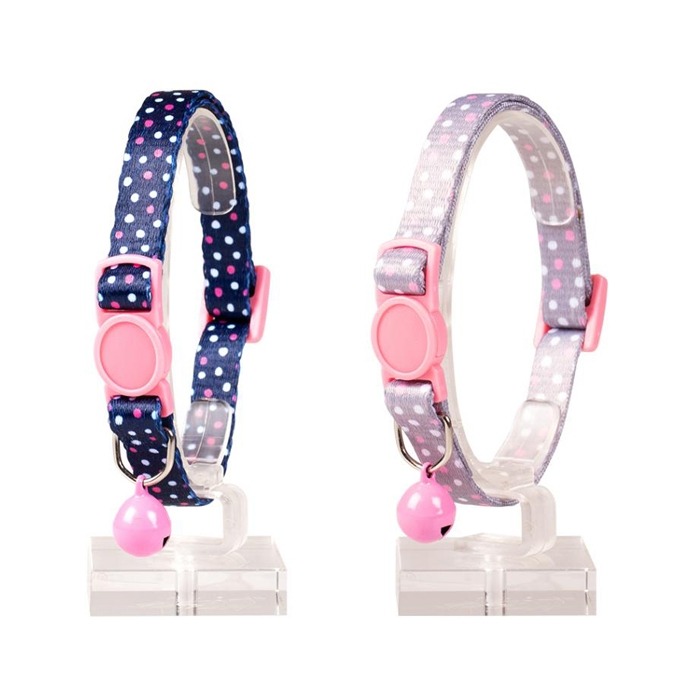 DUVO+ Obroża dla kota w kropki z dzwonkiem granatowa/różowa 20-30cm / 10mm