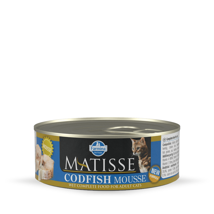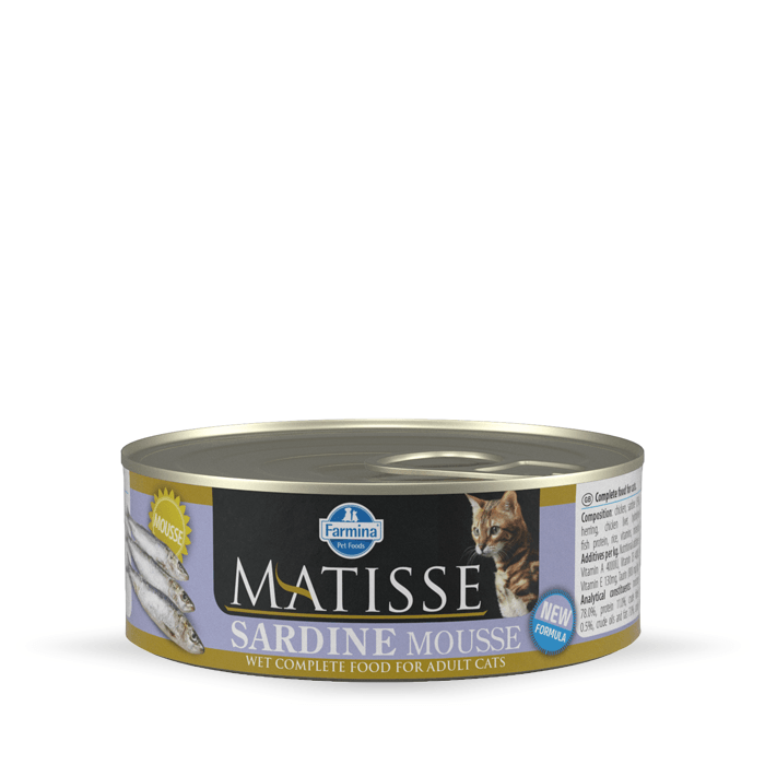 Przeznaczenie - karma mokra dla kotów. To produkt w puszkach, dedykowany osobnikom ras Perski, Ragdoll, Maine coon, Bengalski, Brytyjski, Norweski leśny, Syjamski, Sfinks, Syberyjski, Europejski, Abisyński, Birmański, Szkocki zwisłouchy, Rosyjski niebieski, Egzotyczny czy Amerykański Bobtail. Pyszna i zdrowa karma Farmina matisse cat mousse to nowa propozycja, urozmaicenie diety domowego kota. Nieprzetworzone chemicznie kawałki mięsa i ryb, zmielone na pyszny pasztet, zachęcą każdego dorosłego kota do jedzenia- nawet tego najbardziej wybrednego. To mokra karma dla kota, która zawiera bardzo cenne witaminy, związki mineralne, jak również pokrywa dziennie zapotrzebowanie na składniki, kluczowe do prawidłowego funkcjonowania organizmu domowego pupila.Smaczna i pożywna karma mokra dla kotów od 1 roku życia