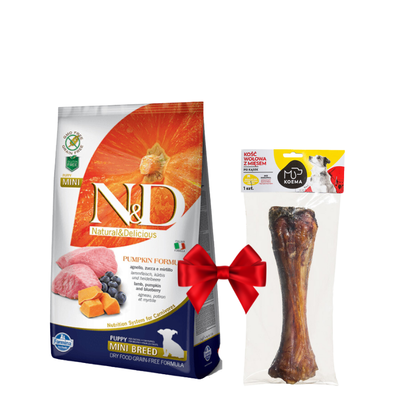 Karma sucha dla psa Farmina N&D GF Puppy Mini Pumpkin Lamb & Blueberry 7kg + kość Koema