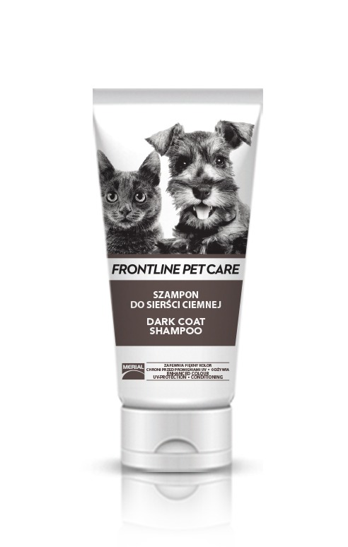 Szampon Frontline® Pet Care Dark Coat Shampoo opracowano specjalnie z myślą o wzmacnianiu i ochronie sierści psów i kotów o ciemnym umaszczeniu. Szampon Frontline® Pet Care Dark Coat Shampoo dzięki zawartości fitopigmentów i Luminescine przywraca sierści głęboki połysk i intensywną barwę, chroniąc ją przed działaniem wolnych rodników oraz płowieniem spowodowanym ekspozycją na promienie słoneczne
