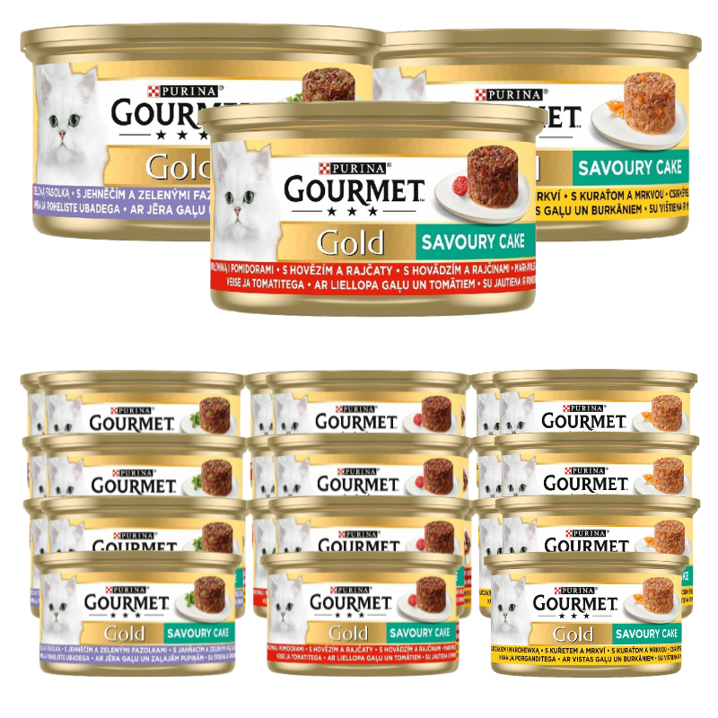Karma mokra dla kota Gourmet Gold Savoury Cake Mix 3 smaków 85g x 24