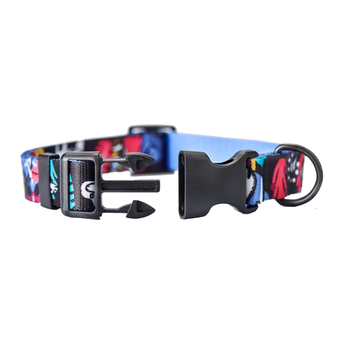 Obroża w o wymiarach 2,5 cm szerokości, dostępna w dwóch kolorach. Posiada wesołe wzory, które idealnie dopasują się do każdego umaszczenia psa.