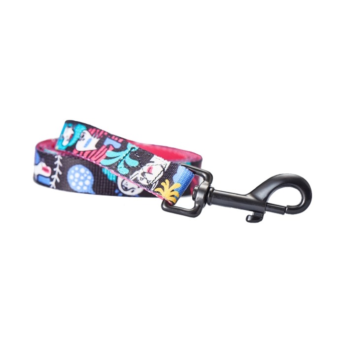 Smycz wykonana z trwałej, gęsto plecionej taśmy. Posiada gustowne, wesołe wzory, które idealnie dopasują się do każdego umaszczenia psa.
