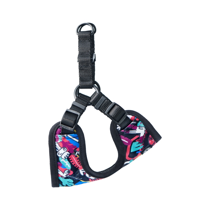 John Dog to lekkie oraz wygodne szelki, których wnętrze podszyte zostało przewiewną siatką, dzięki której Twój pupil będzie czuł się swobodnie. Produkt okala sporą powierzchnię ciała psa i ma bardzo stabilną konstrukcję. Jako właściciel odetchniesz z ulgą, gdy nawet podczas gwałtownego szarpnięcia przez Twojego pupila, ryzyko urazu będzie zminimalizowane, a ciężar rozłoży się równomiernie na materiale. Bez problemu założysz i zdejmiesz je swojemu psu, ponieważ zapięcie taśm przypomina szelki typu walk-in. Oba paski są regulowane, dzięki czemu dopasujesz je tak, że będą wyglądały jak szyte na miarę. Szelki bezuciskowe zimą mogą stać się stylowym kubraczkiem, a katalońskie wzory podkreślą piękno czworonoga np. podczas spotkań z psimi kolegami.