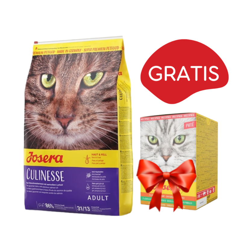 | Dostępne warianty | Josera Culinesse Adult 400gJosera Culinesse Adult 2kgJosera Culinesse Adult 10kgJosera Culinesse Adult 10kg + Josera Multipack Pate 85g x 6 GRATISJosera Culinesse Adult 10kg + Koema mus dla kota Pakiet próbny 400g x 4Josera Culinesse Adult 2x10kg |