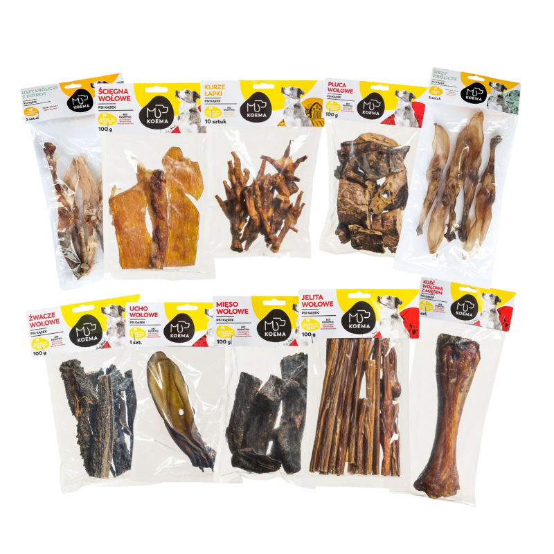 Wysokiej jakości przysmaki dla psa w postaci suszonego mięsa i podrobów. W 100% naturalny oraz zdrowy skład, który zachwyci każdego psa oraz jego opiekuna.