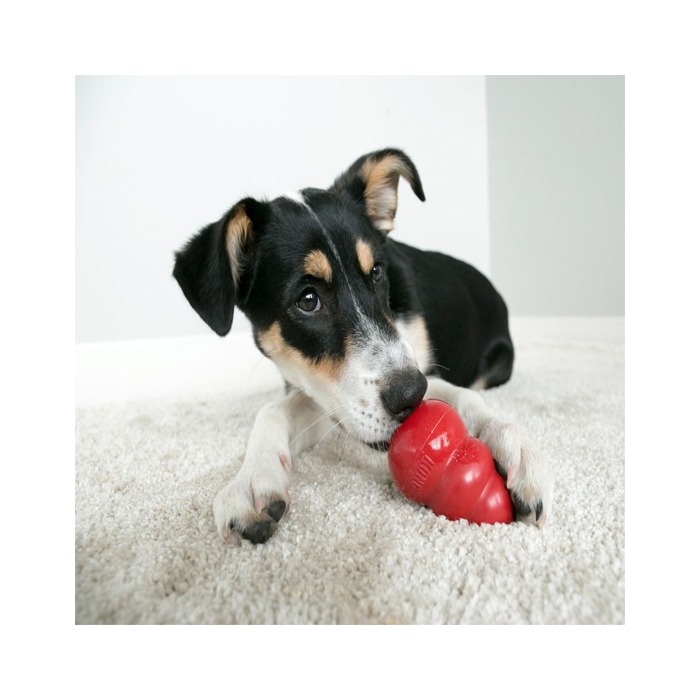 Kong Classic to zabawka idealna, polecana przez najlepszych psich behawiorystów i szkoleniowców, dlaczego? Kong dzięki swojej konstrukcji służy nie tylko jako świetny gryzak, ale również w nim można podawać całe porcje jedzenia dla psa. Mokra karma podana w kongu zaspokaja psią potrzebę zdobywania pokarmu, przez co pokarm nabiera dla niego na wartości, czuje się spełniony i zrelaksowany. Takie wydobywanie jedzenia na prawdę męczy. Dzięki swojej konstrukcji konga można również zamrażać i podawać latem jako świetną ochłodę, również polecany jest podawanie mrożonego konga dla szczeniąt – ten chłód doskonale łagodzi ból dziąseł.