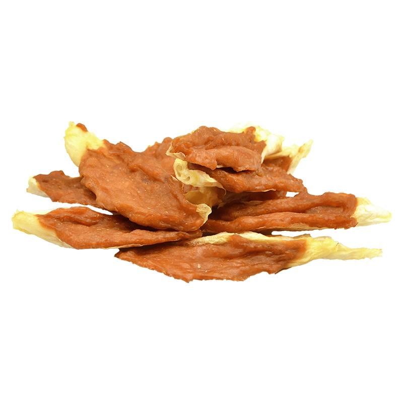 Skład: mięso z piersi z kaczki 60%, uszy królicze 30%, białko orzechowe, gliceryna. Dodatki: konserwant.Analiza: Składniki analityczne: Białko surowe 45%, tłuszcz surowy 3,5%, włókno surowe 3%, popiół surowy 4%, wilgotność 21%.