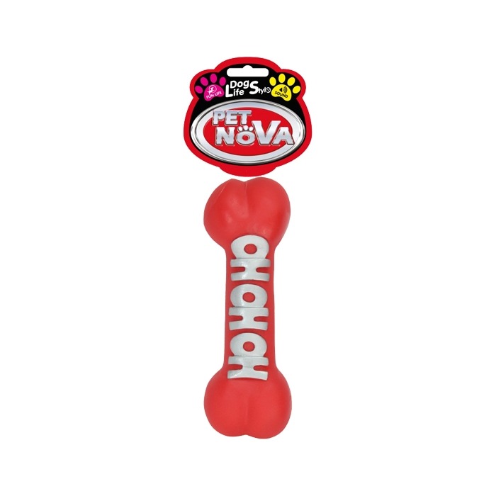 Pet Nova Gumowa kość piszcząca, Ho Ho Ho czerwona 23cm to zabawka dla psa w kształcie uwielbianej przez wszystkich merdających pupili kości. Kość wykonana jest z nietoksycznego winylu, co zapewnia bezpieczeństwo podczas zabawy. Zabawki wykonane z winylowej gumy cechuje długa żywotność, dzięki temu Twój pupil będzie cieszył się zabawką dużo dłużej. .