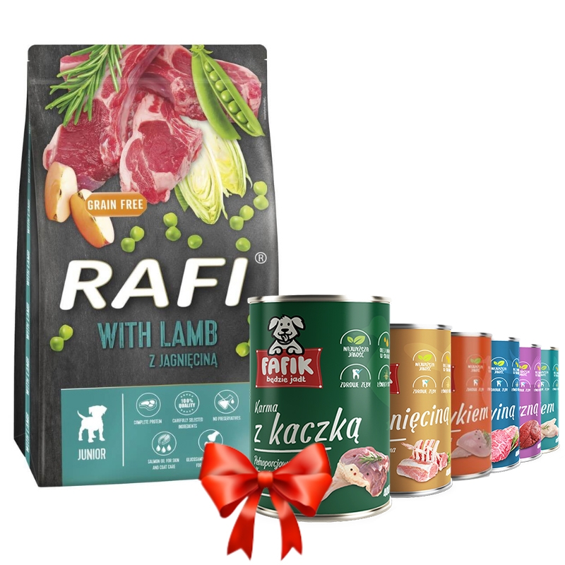 Rafi Junior z jagnięciną 10kg + Fafik karma mokra mix smaków 400g x 6 MIX_051_PDOL_2 - 191,93 zł