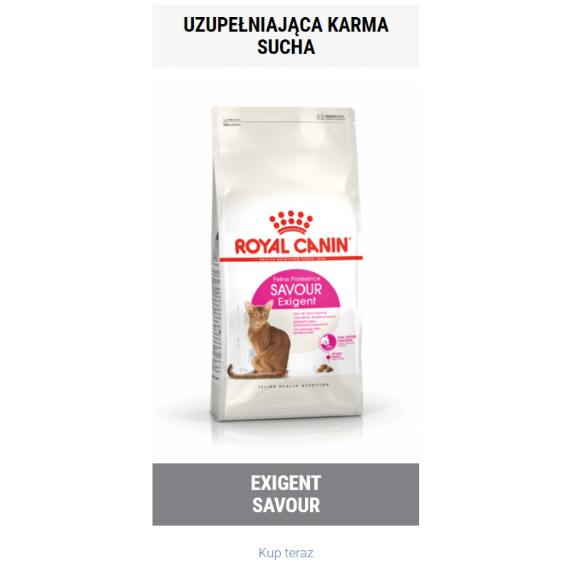 Trudno jest sprostać oczekiwaniom kulinarnym kota, wiedzą o tym doskonale właściciele kotów. Koty często podchodzą do miski i rezygnują z posiłku, dlatego karmaRoyal Canin działa na zmysł smaku, zachęcając kota opróżnienia miski do końca. Wszystko dzięki unikalnemu połączeniu smaków i tekstur w jednym produkcie.