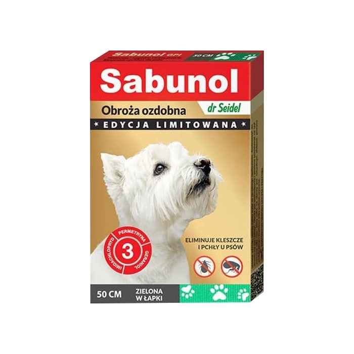 Sabunol Obroża zielona w łapki przeciw pchłom i kleszczom dla psa 50cm