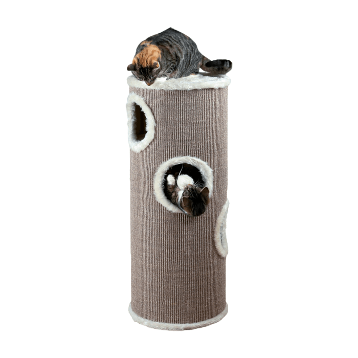 Wieża dla kota od Trixie została wykonana z mocnego materiału, sizalu, który można drapać, pluszu, który dodaje jej przytulności oraz drewnianej powierzchni.