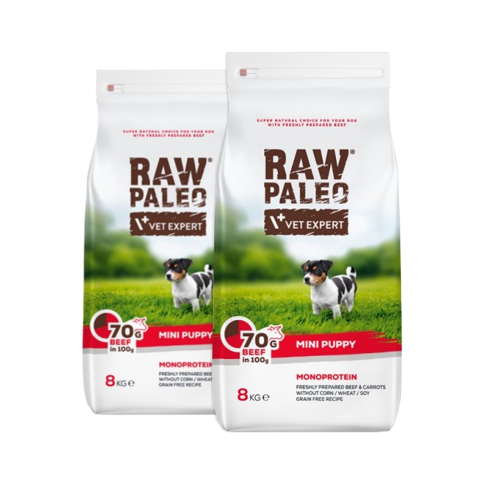 VetExpert Raw Paleo Puppy Mini Beef 2x8kg - sucha karma z wołowiną dla szczeniąt małych ras PRAW044_PAK2 - 533,60 zł
