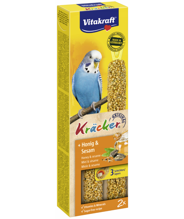 Dodaj trochę radości do życia Twojej papużki falistej dzięki tym smacznym i zdrowym przysmakom Vitakraft Kracker Kolby!